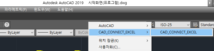 3. 캐드 재실행 후 프로그램 도구막대 ??? 표시 될 경우