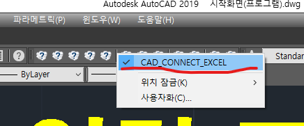 C:\Program Files\cad-connect-excel 폴더에 cad_connect_excel.mns를 선택