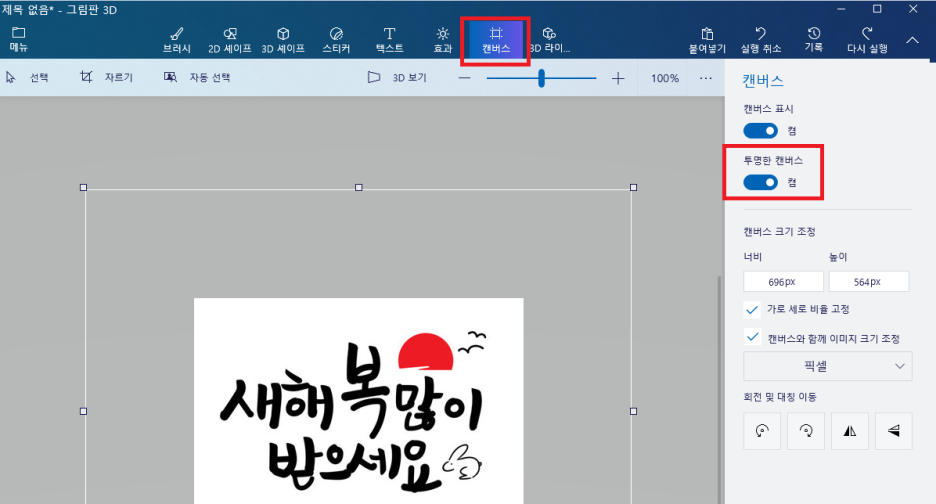 2) 투명한 캔버스 켜기