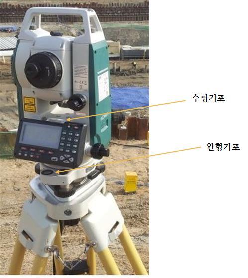 10) 이제 수평 기포를 광파기의 미동나사를 이용해서 수평을 맞춘다.