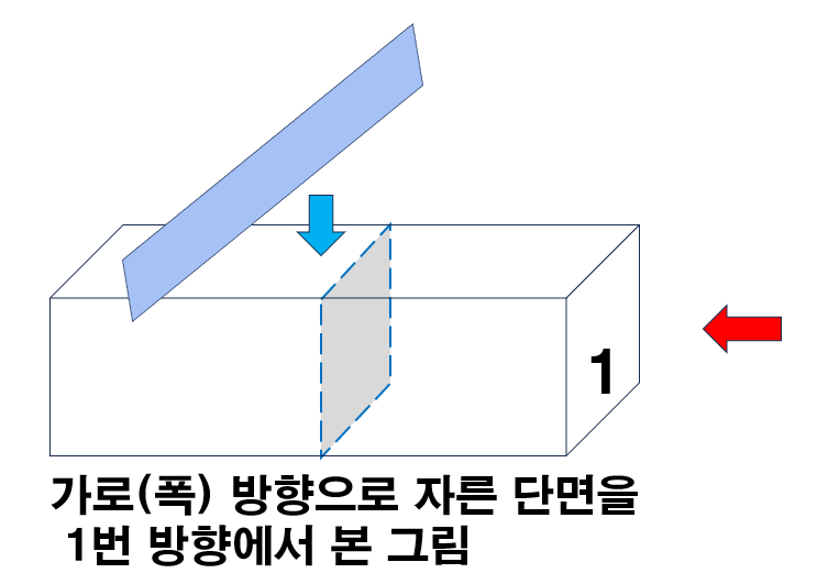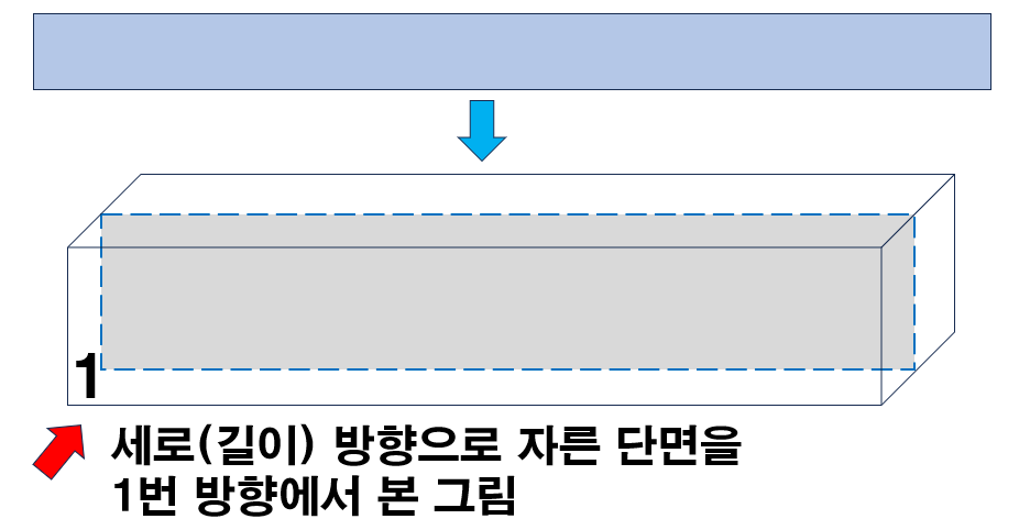 - 중심선을 기준하여 가로방향으로 절단한 단면을 수평 방향에서 본 도면
